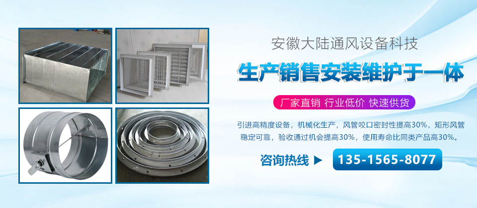 安徽大陸通風(fēng)設(shè)備科技有限責(zé)任公司加工共板法蘭風(fēng)管、螺旋風(fēng)管、角鐵法蘭風(fēng)管、插接式風(fēng)管。價(jià)格合理。質(zhì)量保障。是國(guó)內(nèi)生產(chǎn)和研究通風(fēng)管道的企業(yè),工廠坐落于經(jīng)濟(jì)發(fā)達(dá)的安徽省合肥市。公司配備了好的自動(dòng)化流水線設(shè)備和先進(jìn)的制作安裝技術(shù)。